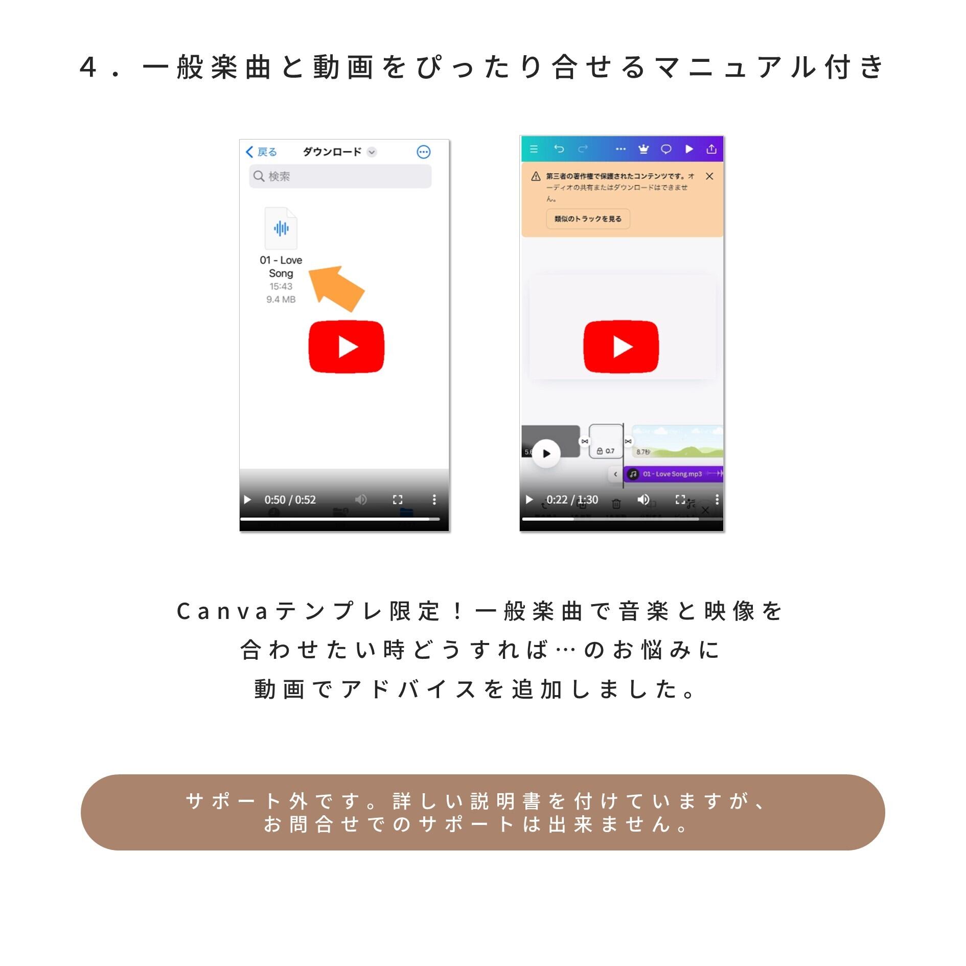 ※一般楽曲を使用したい場合は、CapCutや、iMoiveアプリの使用を推奨。